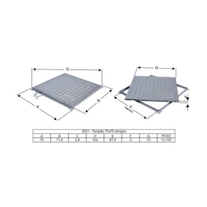 Tampa Tampão Chão Alumínio Fundido Quadrado Simples 70x70cm