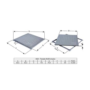 Tampa Tampão Chão Alumínio Fundido Quadrado Simples 80x80cm