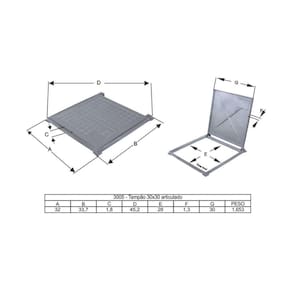 01 Tampa Tampão Chão de Alumínio Quadrado Articulado 30x30cm.