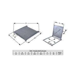 01 Tampa Tampão Chão de Alumínio Quadrado Articulado 40x40cm.