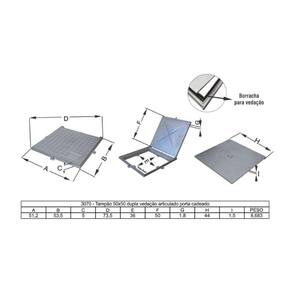 Possui duas tampas sendo a tampa inferior responsável pela vedação juntamente com uma borracha entre o aro proporcionando uma vedação perfeita com ajuda de quatro parafusos sextavados cabeça chata, contra mau cheiro e a entrada de água. É indicado para vedar cisterna (água potável), fossa (esgoto). Sua articulação dificulta o furto da tampa que possui um sistema porta cadeado que restringi o acesso a pessoas não autorizadas.