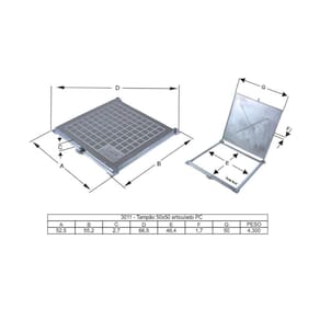 Medida Tampa: 50x50cm.