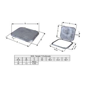 01 Tampa Tampão de Chão Articulado T33 Alumínio Fundido 57,5x49cm.