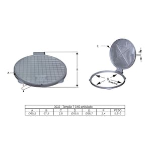 Projetado para tampar caixas de passagem de tubulação, esgoto, águas pluviais, água potável, redes de telecomunicações, eletricidade entre outros. Facilitando o acesso a válvulas, registros e quadro de distribuição, sua articulação dificulta o furto da tampa.