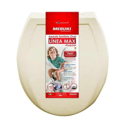 ATENÇÃO: Meça sua louça sanitária conforme instruções na imagem do produto para conferir a compatibilidade do assento.A qualidade Mebuki agora na internetO Assento Sanitário Almofadado Oval Universal Mebuki é resistente, confortável e de fácil instalação. Conheça os detalhes que fazem a diferença no nosso produto:A tampa e o assento não caem, mesmo com louças que possuem caixa acoplada.Parafusos de fixação ajustáveis e reforçados, acompanhados de porcas cônicas, que garantem um melhor ajuste para seu vaso. tampa envolvente que cobre todo o assentoRebaixo higiênico para facilitar o manuseio.Assento almofadado com Poliuretano de qualidade, que evita que a espuma se deteriore com o tempo.Respiro traseiro, posicionado adequadamente para evitar mau cheiro e acúmulo de germes no interior do assento.Disponível em diversas cores.Compatível com TODAS louças sanitárias ovais convencionais do mercado.Distância entre parafusos: mínima: 15 cm / máxima: 16,5 cmMedidas LxCxA : 39x44x3CONTÉM: 1 Assento Sanitário Oval com Tampa1 kit FixaçãoSKU: 10400013 - Max almofadado Ean: 7896796303370