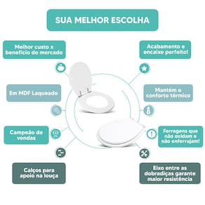 * Acabamento e encaixe perfeito no vaso sanitário.