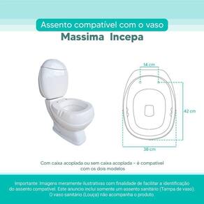 OBS.: O código 6LPF gravado na louça sanitária corresponde ao fluxo de água de uma descarga e não indica o modelo da mesma. RBN: Casa/Banho/Instalações e Acessórios de Banheiro/Vasos Sanitários e Peças/Assento de Vaso Sanitário | Conteúdo da Embalagem: 01 Assento Sanitário | Tipo: Assento Sanitário | Produto: Assento Sanitário | Site do Fabricante: | Marca do Assento Sanitário: Pontto Lavabo | : 6 meses contra defeitos de fabricação | Dica: Instalação: sem desmontar o produto, posicione sobre o vaso sanitário e encaixe os dois parafusos com as borrachas pretas dentro do furo do vaso. Aperte com a chave de fenda no sentido horário até ficar firme. | Para Vaso Sanitário do Modelo: Massima | Para vaso Sanitário da Marca: Incepa | Cor: Branco | Tonalidade: Branco | Material do Assento Sanitário: MDF Laqueado | Instruções de Limpeza: Recomenda-se a limpeza com pano úmido e sabão neutro, não utilizar produtos abrasivos ou químicos | Almofadado?: Não | Peso do Produto: | Tipo de Fechamento: Fechamento Comum | Material da Fixação: Alumínio Anodizado | Precisa de baterias ou pilhas: Não | Regulamentações aplicáveis a produtos perigosos: Não aplicável | Código de certificação: Não aplicável | Ponto de Destaque01: Produzido em MDF Laqueado | Ponto de Destaque02: Ferragem em Alumínio Anodizado (não enferruja, não oxida) | Ponto de Destaque03: Possui 14cm de distância entre furos | Ponto de Destaque04: Produto vai completo, fácil instalação | Ponto de Destaque05: Pontto Lavabo | Termos de Pesquisa01: Assento Sanitário; Tampa de Vaso Sanitário; Massima Branco Incepa; Massima 6lpf; Incepa 6lpf | Quantidade de itens: 1 | Fonte de energia: Não aplicável | Dimensões da embalagem: Altura: 5cm x Largura: 40cm x Comprimento: 50cm | de caixas: 1