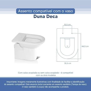 Tampa Vaso Sanitário Poliester Acrilico Duna Branco Para Bacia Deca A Tampa Vaso Sanitário Poliester Acrilico Duna Branco para bacia Deca é o que faltava para deixar seu banheiro ainda mais bonito. EXELENTE DURABILIDADE * É totalmente impermeável * Pode ser lavado com água à vontade