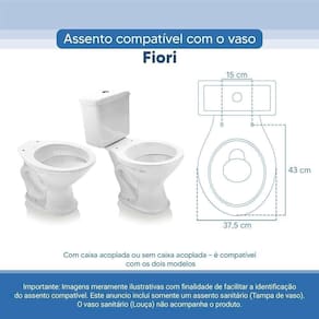 OBS.: O código 6LPF gravado na louça sanitária corresponde ao fluxo de água de uma descarga e não indica o modelo da mesma. RBN: Casa/Banho/Instalações e Acessórios de Banheiro/Vasos Sanitários e Peças/Assento de Vaso Sanitário | Conteúdo da Embalagem: 01 Assento Sanitário | Tipo: Assento Sanitário | Produto: Assento Sanitário | Site do Fabricante: www.ponttolavabo.com.br/ | Marca do Assento Sanitário: Pontto Lavabo | Garantia: 6 meses contra defeitos de fabricação | Dica: Instalação: sem desmontar o produto, posicione sobre o vaso sanitário e encaixe os dois parafusos com as borrachas pretas dentro do furo do vaso. Aperte com a chave de fenda no sentido horário até ficar firme. | Para Vaso Sanitário do Modelo: Fiori | Para vaso Sanitário da Marca: Fiori | Cor: Branco | Tonalidade: Branco | Material do Assento Sanitário: Poliéster | Instruções de Limpeza: Recomenda-se a limpeza com água e sabão neutro, não utilizar produtos abrasivos ou químicos | Almofadado?: Não | Peso do Produto: 2.98 | Tipo de Fechamento: Fechamento Comum | Material da Fixação: Alumínio Anodizado | Precisa de baterias ou pilhas: Não | Regulamentações aplicáveis a produtos perigosos: Não se aplica | Código de certificação: Não se aplica Ean: 7899983692080