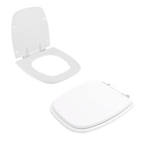 DIFERENCIAL * Possui calços que evitam o contato direto com a louça e que o assento deslize lateralmente. * Proporcionam maior estabilidade durante o uso. * Acabamento e encaixe perfeito no vaso sanitário. * Possui eixo entre as dobradiças, mantendo o assento sanitário firme na louça. * Sua ferragem metálica é super resistente e não oxida e nem enferruja.