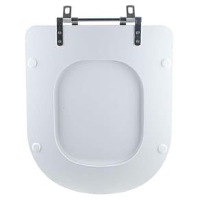 DIFERENCIAL * Possui calços que evitam o contato direto com a louça e que o assento deslize lateralmente. * Proporcionam maior estabilidade durante o uso. * Acabamento e encaixe perfeito no vaso sanitário. * Possui eixo entre as dobradiças, mantendo o assento sanitário firme na louça. * Sua ferragem metálica é super resistente e não oxida e nem enferruja.