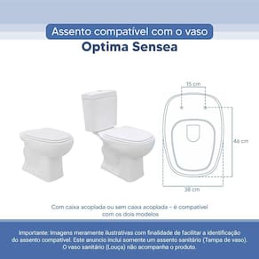 Tampa Vaso Sanitário Poliester Acrilico Optima Branco para bacia Sensea
