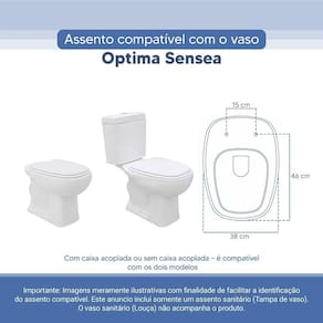 Tampa Vaso Sanitário Poliester Acrilico Optima Branco Para Bacia Sensea