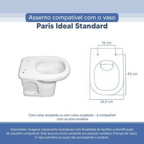 Tampa Vaso Sanitário Poliester Acrilico Paris Branco para bacia Ideal Standard