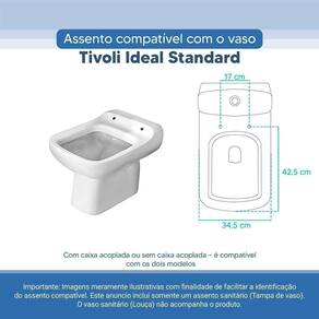 Tampa Vaso Sanitário Poliester Acrilico Tivoli Branco Para Bacia Ideal Standard A Tampa Vaso Sanitário Poliester Acrilico Tivoli Branco para bacia Ideal Standard é o que faltava para deixar seu banheiro ainda mais bonito. EXELENTE DURABILIDADE * É totalmente impermeável * Pode ser lavado com água à vontade