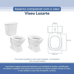 OBS.: O código 6LPF gravado na louça sanitária corresponde ao fluxo de água de uma descarga e não indica o modelo da mesma. RBN: Casa/Banho/Instalações e Acessórios de Banheiro/Vasos Sanitários e Peças/Assento de Vaso Sanitário | Conteúdo da Embalagem: 01 Assento Sanitário | Tipo: Assento Sanitário | Produto: Assento Sanitário | Site do Fabricante: www.ponttolavabo.com.br/ | Marca do Assento Sanitário: Pontto Lavabo | Garantia: 6 meses contra defeitos de fabricação | Dica: Instalação: sem desmontar o produto, posicione sobre o vaso sanitário e encaixe os dois parafusos com as borrachas pretas dentro do furo do vaso. Aperte com a chave de fenda no sentido horário até ficar firme. | Para Vaso Sanitário do Modelo: Viseu | Para vaso Sanitário da Marca: Luzarte | Cor: Branco | Tonalidade: Branco | Material do Assento Sanitário: Poliéster | Instruções de Limpeza: Recomenda-se a limpeza com água e sabão neutro, não utilizar produtos abrasivos ou químicos | Almofadado?: Não | Peso do Produto: 2.98 | Tipo de Fechamento: Fechamento Comum | Material da Fixação: Alumínio Anodizado | Precisa de baterias ou pilhas: Não | Regulamentações aplicáveis a produtos perigosos: Não aplicável | Código de certificação: Não aplicável | Ponto de Destaque01: Produzido em 100% Resina de Poliéster, impermeável | Ponto de Destaque02: Ferragem em Alumínio Anodizado (não enferruja, não oxida) | Ponto de Destaque03: Possui 15cm de distância entre furos | Ponto de Destaque04: Produto vai completo, fácil instalação | Ponto de Destaque05: Pontto Lavabo | Termos de Pesquisa01: Assento Sanitário; Tampa de Vaso Sanitário; Viseu Branco Luzarte; Viseu 6lpf; Luzarte 6lpf | Quantidade de itens: 1 | Fonte de energia: Não aplicável | Dimensões da embalagem: Altura: 5cm x Largura: 40cm x Comprimento: 50cm | Número de caixas: 1