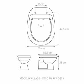 Tampa Vaso Village Cinza Escuro Tampa Para Vaso Deca Em Mdf Cinza Vip Assento Sanitário tampa de vaso fabricado em madeira MDF com pintura laqueada, com proteção raios UV, que garante excelente acabamento e durabilidade. Compatível com vasos bacias/louças sanitários com ou sem caixa acoplada. Tem calços de PVC instalados na tampa e no assento para proporcionar estabilidade ao uso, pois distribui o peso uniformemente sobre a louça sanitária. Montagem simples e fácil. Possui ferragem em alumínio anodizado que não enferruja/oxida e oferece muita resistência. O assento é acompanhado por parafusos para instalação. Embalagem dupla reforçada garante o recebimento do produto totalmente protegido. Especificações: - Dimensões da caixa: largura: 49,50cm. Altura: 4,00cm comprimento: 39,50cm - Peso do produto: 1,98kg - Acabamento: brilhante - Uso: este assento é adequado para uso na louça Deca modelo Village - Garantia: 3 meses - Itens inclusos: Tampa e assento em MDF com calços de PVC, ferragem inoxidável, embalagem duplamente reforçada. Contém todos os parafusos e encaixes para instalação, sendo necessária somente uma chave de fenda para instalar o produto na louça sanitária. Instalação: posicione o produto, devidamente centralizado, em cima do vaso sanitário. Sem desmontar a ferragem, insira as buchas de borracha dentro dos furos da bacia sanitária. Encaixe os parafusos e posicione as porcas. Utilizando uma chave de fenda, aperte o parafuso no sentido horário até que o assento esteja firme e fixo no vaso. Manutenção: recomendamos a limpeza periódica com pano levemente umedecido com sabão neutro. Não usar esponjas abrasivas ou palha de aço nem qualquer tipo de produto químico.