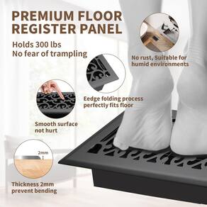 O SANYCASA é o elegante registro de piso apresenta alta qualidade, feito de material de alumínio fundido livre de ferrugem. Feito à mão e acabado. utilizado para cobrir aberturas de dutos de ventilação de piso para sistemas AC, calor e HVAC. Nossos registros de piso são ideais para sua casa em todas as áreas. Proporcionará uma aparência decente à sua casa. Você vai se apaixonar por esta linda capa de registro de piso. Nosso design proporciona um visual moderno e garante calor silencioso e sem chocalho ou fluxo de ar frio do seu sistema de ar central para a sala, proporcionando fácil abertura e fechamento com amortecedores anexados na parte traseira. Feito de alumínio fundido de areia durável para manter tráfego regular e leve. Durável, pode pisar, não dobra ou quebra Não coloque pernas de móveis nele. Não recomendado para tráfego intenso walk-on. O material utilizado é alumínio fundido durável. O amortecedor é removível e ajustável para controlar o fluxo de ar e torná-lo seguro. Nossos registros de piso são feitos lindamente e construídos para durar muito tempo. Estes registros de piso adicionarão um toque de elegância moderna a qualquer cômodo por um longo período. Limpar o registro do piso é muito fácil. Todos os nossos registros de piso são revestidos com pó e são duráveis. Pode ser limpo apenas escovando para secar, se depois de alguns anos você vir alguma diferença de cor ou ficar opaco ou quiser mudar a cor, você pode pintá-los novamente usando spray de tinta metálica disponível no mercado. - Registos de piso premium: os painéis de cobertura de ventilação de piso são feitos de aço resistente de 2 mm de espessura, permitindo um peso de caminhada de 136 kg, duráveis, lisos, brilhantes e não têm bordas afiadas. Processo de dobra de borda para garantir um ajuste perfeito com o chão para evitar tropeços, acabamento premium para proteção extra contra ferrugem e corrosão. Crie um visual perfeito em sua casa com um conjunto de tampas de ventilação de aquecedor de rodapé que combinam facilmente com a decoração existente. - Amortecedor não enferrujado e resistente: a caixa de amortecimento é feita de material ABS de alta resistência, que é retardador de chama e não é fácil de deformar (testado muitas vezes para temperaturas internas de até 90 ?), não é fácil de enferrujar como metal, você pode abrir e fechar facilmente o fluxo de ar, silencioso e sem ruído. A parte superior do amortecedor se encaixa perfeitamente com a tampa de ventilação do registro de aço resistente e é presa com clipes de metal para evitar que caia, tornando-o durável e duradouro. - MAXIMIZE O FLUXO DE AR E CONTROLE DIRECIONAL: O registro de piso 4x8 possui um amortecedor ajustável e um interruptor de controle de fluxo de ar simples para 100% de controle do fluxo de ar para o sistema de ar condicionado central. As aberturas tradicionais restringirão uma grande quantidade de fluxo de ar e não podem ajustar a direção do fluxo de ar, o que causará ruído ao correr. As aberturas de piso 4x10 usam lâminas de ventilador ajustáveis de duas peças que são fáceis de guiar o fluxo de ar e ajustar a direção e são silenciosas e silenciosas durante a operação. - DESIGNS/PADRÃO ESTÉTICOS: Renove o visual da sua casa com o design neoclássico decorativo elegante e atraente e vem com opções de cores e tamanhos. Adicionará beleza e aparência rica a qualquer um dos seus cômodos tradicionais, antigos a contemporâneos. Feito por artesãos habilidosos, oferece um belo contraste com o seu piso, seja carpete, azulejo ou madeira! Também vem em ferro fundido. - FÁCIL INSTALAÇÃO: O regulador de ventilação de registro de piso de 4 x 8 é fácil de instalar sem ferramentas ou experiência, basta remover a tampa de ventilação antiga e colocar o novo registro de ventilação na abertura do duto padrão. Por favor, determine o tamanho que você precisa antes de comprar, observando que você está medindo a abertura do duto e não o registro antigo. Estas aberturas não são adequadas para aplicações de teto ou parede.