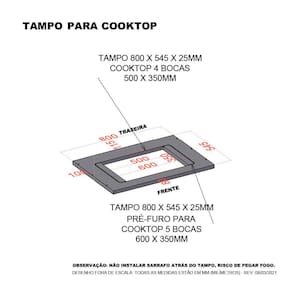 Tampo 80cm com Furo para Cooktop 4 Bocas 50cm X 35cm e Pré Furo Cooktop 5 Bocas 60cm x 35cm Luciane