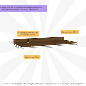 Dimensões do produto montado: Altura: 7cm | Largura: 120cm | Profundidade: 52cm *Você pode consultar as medidas detalhadas na imagem técnica do produto.