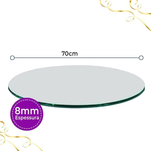 Este tampo para mesa de vidro incolor possui um diâmetro de 70cm, perfeito para mesas redondas. Ele é resistente e durável, feito para durar por muito tempo.