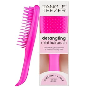 A Tangle Teezer The Ultimate Detangler Mini Runway Pink - Escova de Cabelo é a versão compacta da icônica escova desembaraçadora da Tangle Teezer, perfeita para cuidados capilares em movimento. Com design ergonômico e na vibrante cor rosa Runway Pink, esta escova é ideal para desembaraçar cabelos molhados com suavidade, sendo indicada para todas as texturas capilares. Equipada com 325 cerdas flexíveis de dupla camada com tecnologia Regular Flex, remove nós sem causar quebras, potencializando a distribuição de shampoos, condicionadores e máscaras hidratantes. Seu tamanho reduzido, 60% menor que a versão padrão, e o orifício para chaveiro tornam-na perfeita para viagens, crianças ou cabelos curtos. Resistente à água, mas não submersível, é ideal para uso no banho, praia ou piscina, garantindo fios mais saudáveis, hidratados e brilhantes com um toque de estilo.