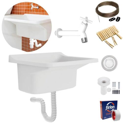 ITENS INCLUSOS 01 Tanque 01 Sifão 01 Torneira Plástica 01 Rolo de Fita Veda Rosca 12mm x 10m 01 Válvula Com tampa 06 Buchas S10 04 Parafusos 3,5 x 55mm 02 Parafusos 3,5 x 75mm 02 Espaçadores 02 Arruelas 01 Varal em Aço e PVC com 10 Metros 02 Presilhas Plásticas Para Travamento 12 Prendedores de Roupa em Madeira 01 Ralo em Inox 4,7cm Marca: Não Informado Ean: 7894141423407