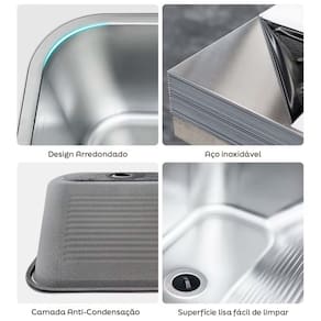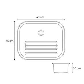 - Material: Aço Inoxidável 201 de alta qualidade. - Dimensões: 450 mm x 450 mm x 200 mm. - Espessura: 3 mm. - Acabamento: Galvanização elétrica para maior durabilidade e resistência à corrosão. - Características: Design moderno com tecnologia antirruído para uma lavanderia mais silenciosa.