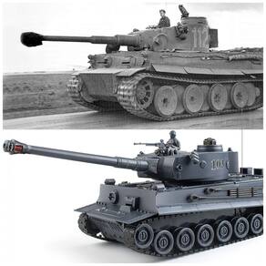 Este Tanque Tigre Alemão de Controle Remoto é uma incrível coleção de modelos de tanques militares da Segunda Guerra Mundial. Com detalhes de alto nível, este brinquedo não é apenas divertido para simular exercícios militares e aventuras de guerra, mas também é uma ótima peça de coleção. Ele possui um carregador USB atualizado que é compatível com os EUA. Além disso, o tanque dispara com ação de recuo realista, aciona dois degraus, lança canhão de raios infravermelhos, torre giratória de 330 graus para a esquerda e para a direita, move-se para frente e para trás, rotação de 360 ??graus para a esquerda e para a direita, com sons e luz realistas e muito mais. A torre do forte pode girar 330 graus para a esquerda e para a direita, atirando e destruindo inimigos em todas as direções. Ao disparar simulado, ela tem um efeito de recuo com iluminação e som hiper-realistas que farão seus meninos se sentirem como um verdadeiro comandante. O tanque também possui uma função de autoshow que começa dentro de 10 segundos após a partida e dura por 45 segundos, a menos que receba alguma operação do controle remoto.