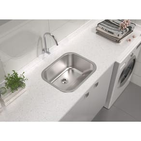 O Tanque de Encaixe Tramontina Hera 34 L em Aço Inox Acetinado 50x40 cm é essencial para a hora de lavar, enxaguar e deixar roupas e sapatos de molho. Você pode escolher o modelo de tanque ideal para a sua casa de acordo com a sua necessidade e o espaço que tiver disponível. O Tanque de Encaixe Tramontina em Aço Inox Acetinado 50x40 cm é produzido em aço inox AISI 304, o que torna o produto mais higiênico e durável. Fabricado no sistema monobloco, ou seja, sem solda, o tanque também apresenta borda de sobrepor e esfregador inclinado, com frisos arredondados, que auxiliam na lavagem de roupas. A peça acompanha válvula de alta qualidade, possui excelente vedação e é de fácil montagem. Tramontina e você aliando beleza e praticidade na sua casa! Informações Gerais - Aço Inox AISI 304 com 0,8 mm de espessura e acabamento acetinado. - Acompanha válvula de Ø 3 1/2". - Profundidade da cuba 225 mm. - Capacidade 34L. - Peso 2,55 kg.