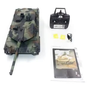 Modelo: Tanque de Guerra 1:16 Heng Long Leopard 2A6 Camuflado Código do Produto: 3889-1 Descubra a adrenalina de controlar um verdadeiro tanque de guerra em miniatura! O Tanque de Guerra Heng Long Leopard 2A6 oferece uma experiência de combate emocionante, com velocidade de até 3 KM/h e um tempo de controle remoto de 30 minutos. Características principais: - Materiais: Ligas e Plásticos de alta qualidade. - Bateria do tanque: 7,4V 1800mah, com carregamento via cabo USB. - Distância de controle remoto: até 100 metros. - Função de proteção: Sim, para garantir a durabilidade do seu tanque. Com um design de verde camuflagem, este modelo possui uma rotação da torre de 320 graus e efeitos de som realistas, tornando cada batalha uma experiência imersiva. Ideal para colecionadores e entusiastas de veículos militares! Especificações: 68,52322 cm | Peso: 4,4 kg (versão básica). Experimente a emoção do campo de batalha com o Heng Long Leopard 2A6! Marca: Não Informado