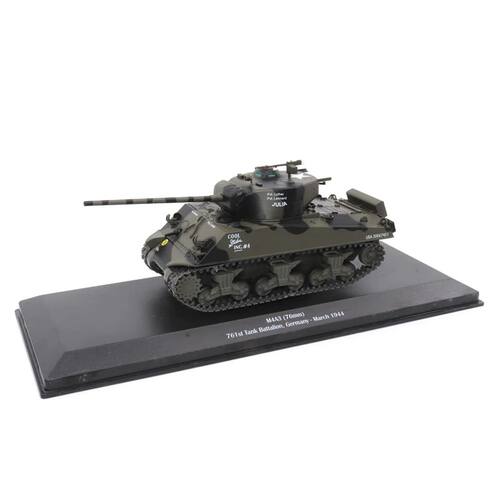 Este modelo de tanque M4A3 (76mm) do 761º Batalhão de Tanques, na Alemanha em março de 1944, é uma réplica fiel do veículo histórico. Fabricado em escala 1:43 pela Diecast Masters, este modelo é feito de metal e plástico de alta qualidade e possui detalhes impressionantes, como canhão de 76 mm, trilhos de blindagem e marcações autênticas. Marca: Não Informado