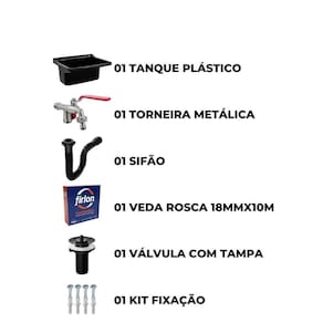 Tanque Plástico 40L Para Lavanderia Preto O uso do tanque de lavar roupa é ideal para lavagem de roupas delicadas, como roupas íntimas, de bebês e peças que requerem atenção especial, pois permite um controle mais preciso da temperatura e movimento das roupas durante a lavagem. Também é uma opção prática para pré-lavagem de roupas muito sujas antes de colocá-las em uma máquina de lavar. O tanque de lavar roupa é uma opção acessível e prática para quem deseja lavar roupas à mão sem abrir do conforto e da praticidade de um equipamento projeto para essa finalidade. ESPECIFICAÇÕES TÉCNICAS Material: Polipropileno Dimensões: 57 x 52 x 31,8cm Capacidade: Volume útil/total 23 / 40 Litros Locais Sugeridos: Lavanderias Acompanha Torneira: Não Acabamento: Brilhante Cor: Preto Torneira de Metal Para Jardim Quintal Tanque Com Bico 1/2 Esta torneira é fabricada em metal de alta qualidade, o que garante sua resistência à corrosão e a capacidade de resistir às condições climáticas adversas ao ar livre. Equipada com um bico de 1/2 e um único comando, será facil de operar e ajustar para atingir a pressão que você está procurando. O design ergonômico do punho facilita a abertura e o fechamento da torneira, tornando o uso confortável e prático. CARACTERÍSTICAS - Construção em metal durável e resistente à corrosão - Bico de 1/2 polegada para um fluxo de água controlável - Fácil instalação em sistemas de encanamento padrão - Design ergonômico para facilitar o uso - Versatilidade para uma variedade de aplicações em áreas externas FICHA TÉCNICA Modelo: Torneira de Aço 1/2 Uso: Jardins, quintais, tanques entre outros ambientes externos Material: Liga de zinco Tamanho do Bico: 1/2 Polegada Sifão Sanfonado Universal 61cm Preto O sifão sanfonado universal é um acessório essencial de encanamento, projetado para se adaptar a qualquer saída de válvula de pia e a qualquer tubulação de esgoto, independentemente de seu tamanho ou tipo. Além disso, o sifão sanfonado universal corrige possíveis desalinhamentos entre a cuba e a tubulação de despejo, evitando assim a formação de bloqueios e obstruções que possam causar vazamentos ou refluxo de água suja. Esse acessório é ideal para tanques, pias e cubas em banheiros, cozinhas e lavanderias. Ele também é resistente a altas temperaturas, suportando água fria e quente até 90C, o que o torna adequado para ser em qualquer tipo de ambiente. Este sifão é compatível com tubos e conexões de 38, 40, 48 e 50mm, garantindo uma instalação fácil e segura, sem necessidade de ferramentas especiais. Ele é feito de plástico ABS de alta qualidade, o que o torna resistente a rachaduras, corrosão e vazamentos, garantindo sua durabilidade ao longo do tempo. Em resumo, o sifão sanfonado universal é uma solução confiável e prática para quem procura um acessório de encanamento que seja fácil de instalar e que possa se adaptar a diversas situações de encanamento. Sua capacidade de corrigir desalinhamentos e impedir o retorno de mau cheiro da tubulação de esgoto torna-o uma escolha inteligente e eficaz para garantir a segurança e higiene em sua casa ou negócio. ESPECIFICAÇÕES TÉCNICAS Material: Polipropileno Entrada Para Válvula Polegada : 7/8 Saída Para Tubos e Conexões: 38, 40, 48 e 50mm Modelo: Para pias, cubas, tanques, lavatórios e válvula americana Suporta temperatura até: 90 graus Cor: Preto Acabamento: Brilhante Manual de Instalação: Sim ITENS INCLUSOS 01 Tanque 01 Válvula Com tampa 06 Buchas S10 04 Parafusos 3,5 x 55mm 02 Parafusos 3,5 x 75mm 02 Espaçadores 02 Arruelas 01 Torneira de Metal 1/2 01 Sifão 01 Adaptador Universal 01 Rolo de Fita Veda Rosca 18mm x 10m