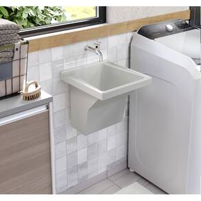 Informações técnicas: Cor: branco gelo Material: mármore sintético Medidas: - comprimento: 45cm - altura: 33cm - largura: 47,5cm Capacidade: 23 litros Tipo de instalação: mão francesa ou mureta Uso indicado: área de serviço