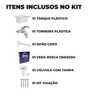 Tanque plástico 34l para lavanderia branco astra O uso do tanque de lavar roupa é ideal para lavagem de roupas delicadas, como roupas íntimas, de bebês e peças que requerem atenção especial, pois permite um controle mais preciso da temperatura e movimento das roupas durante a lavagem. Também é uma opção prática para pré-lavagem de roupas muito sujas antes de colocá-las em uma máquina de lavar. O tanque de lavar roupa é uma opção acessível e prática para quem deseja lavar roupas à mão sem abrir do conforto e da praticidade de um equipamento projeto para essa finalidade. Especificações técnicas Material: polipropileno Dimensões: 54 x 47 x 31,1cm Capacidade: volume útil/total 20 / 34 litros Locais sugeridos: lavanderias Marca: astra Cor: branco O sifão sanfonado universal 61cm branco astra É um componente essencial para encanamento, adaptável a várias saídas de válvulas. Ele evita bloqueios e vazamentos, corrigindo desalinhamentos entre cubas e tubulações. Feito de polipropileno resistente, suporta temperaturas de até 90c e é compatível com diversas saídas, ideal para banheiros, cozinhas e lavanderias. Torneira de metal para jardim quintal tanque com bico 1/2 fertak Essa torneira é construída em aço resistente à corrosão, ideal para uso externo em jardins, quintais e tanques. Seu bico de 1/2 permite um controle preciso do fluxo de água, facilitando sua adaptação às necessidades. Com um design ergonômico, é fácil de operar, proporcionando conforto e praticidade ao usuário. O kit segue com todos os itens para montagem e pronto para uso após a instalação - 90 dias para o tanque - 90 dias para o sifão - 30 dias para a torneira Itens inclusos 01 tanque 01 sifão 01 torneira de metal 1/2 01 rolo de fita veda rosca 18mm x 10m 01 válvula com tampa 06 buchas s10 04 parafusos 3,5 x 55mm 02 parafusos 3,5 x 75mm 02 espaçadores 02 arruelas Marca: Não Informado Ean: 7894141409975