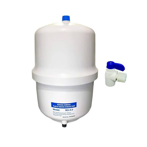 Tanque Reservatório Pressurizado para Osmose Reversa - 11 Litros 3.0 G Informações do Produto Reservatório pressurizado que possui um diafragma interno para aumentar a pressão da água e sua vazão em sistemas de Osmose Reversa. Capacidade interna é de 60 a 70% do seu volume nominal. Especificações do Produto - Volume nominal: 11 litros 3.0 galões - Volume útil: 7 litros - Diâmetro externo: 25 cm - Altura: 37 cm - Peso: 1,8 Kg - Conexão 1/4 - Cor: Branca - Material: plástico Marca: Não Informado Ean: 7893199399528