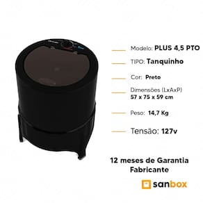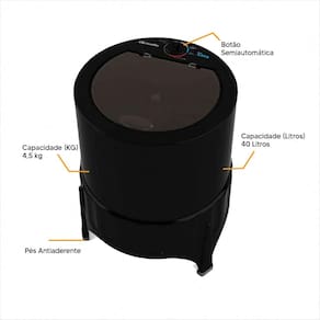 Especificações Técnicas: -Marca: Mueller -Modelo: Lavadora PLUS 4,5 PTo -EAN: 7896664602383 -Cor: Preto -Tipo: Semiautomática -Abertura: Superior -Capacidade (Kg): 4,5Kg -Capacidade de água na cuba - nível máximo (litros): 40 L -Capacidade de Lavagem (Kg): 4,5Kg -Capacidade de Secagem (Kg): 0Kg -Consumo de energia - ciclo normal água fria (kW/h): 0,09 -Desmontável: NÃO -Despensa para Produtos de Limpeza: NÃO -Dispenser para Alvejante: NÃO -Dispenser para Amaciante: NÃO -Dispenser para Sabão: NÃO -Engates p/ Mangueira: SIM -Entrada de Água: Manual -Enxágue: Manual -Esfregador: NÃO -Gabinete: Plástico especial -Grade de Proteção no Motor: SIM -Mangueira de entrada de água: SIM -Motor com Protetor Térmico: SIM -Níveis de Água: 0 -Número de Programas: 4 -Peneira para Pequenos Objetos: SIM -Pés: Fixos -Potência 127V (watts): 365 -Saída de Água: Manual -Sistema de Lavagem: Agitação -Tampa transparente: SIM -Classificação Eficiência Energética: A -Tipo: Semiautomática -Tensão: 127v -Dimensões (L x A x C): 57 x 75 x 59 cm -Peso: 14,7 kg -Peso Bruto: 17,2 Kg