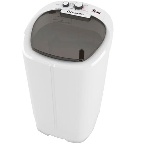 Características: Marca: Mueller Modelo: 6100006 Capacidade de lavagem: 20 kg Programas: 4 programas Abertura da tampa: Superior Dispenser para alvejante: Não Dispenser para sabão em pó: Sim Dispenser para amaciante: Sim Enxague: Não Molho: Sim Filtro de fiapos: Sim Eficiência energética: A Potência:: 380 W | 220V: 395 W