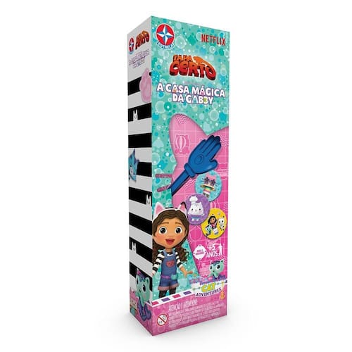 Tapa Certo a Casa Mágica da Gabby - Estrela Uma versão do clássico Tapa Certo com os personagens da série de grande sucesso entre as crianças A Casa Mágica da Gabby. O jogo funciona da seguinta maneira: as cartas quadradas ficam viradas para baixo enquanto as cartas redondas ficam viradas para cima. Um jogador deve virar uma carta quadrada, revelando sua imagem, e os jogadores devem rapidamente dar um tapa na carta redonda de mesma imagem utilizando suas mãozinhas plásticas. Quem conseguir mais cartas no final do jogo é o vencedor! Selo Inmetro: 009 246/2019