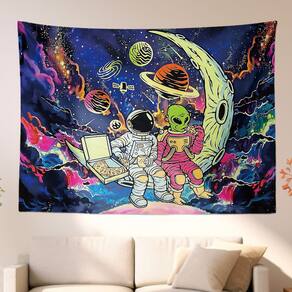 Tapeçaria, astronauta e alienígena, sala de parede, 150x130cm, microtecido