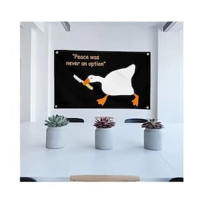 Tamanho: 100 x 150 cm Peso: 110 g Material: poliéster Embalagem: 1 x tapeçaria Esta tapeçaria peculiar apresenta a frase humorística “A paz nunca foi uma opção”, acompanhada por um pato de desenho animado segurando um bastão. Uma peça divertida e divertida que traz uma atmosfera ousada e alegre a qualquer espaço. Feita com tecido 100% poliéster de alta qualidade, esta tapeçaria é macia ao toque, mas durável o suficiente para uso duradouro. Ele se encaixa lindamente quando pendurado na parede e é fácil de cuidar. A impressão de alta definição da tapeçaria garante que as cores vibrantes e o design arrojado permaneçam nítidos e duradouros. O pato humorístico e a frase cativante o tornam um complemento ideal para espaços casuais e divertidos. Uma decoração versátil, essa tapeçaria pode aprimorar quartos, salas de estar ou escritórios. É um presente ideal para pessoas que gostam de uma decoração única e bem-humorada. Perfeito tanto para adultos quanto para adolescentes. A tapeçaria não tem moldura e é fácil de pendurar com alfinetes ou tachas decorativas. É simples de manter, exigindo apenas uma lavagem suave à mão ou a seco. Passe-o a ferro em temperatura baixa para mantê-lo com aspecto fresco.