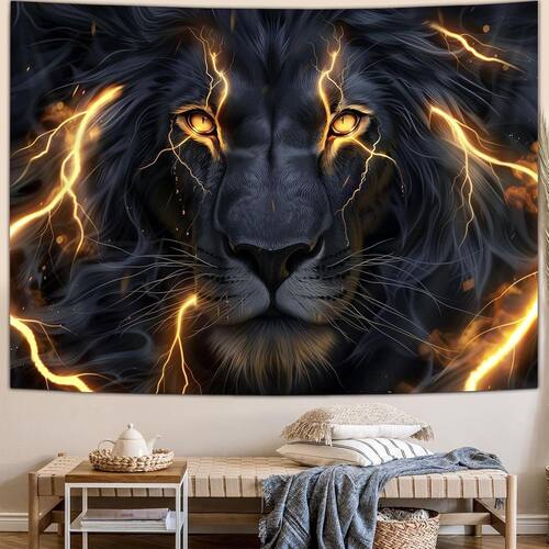 Material: fibra de poliéster (poliéster) Tamanho: 150 cm × 130 cm Peso: 260 g 🦁 Arte poderosa de leão — Apresenta um impressionante close-up de um leão com olhos dourados brilhantes e detalhes luminosos, simbolizando força, coragem e energia selvagem. Design arrojado e dinâmico — A impressão digital de alta definição com contraste vívido de tons escuros e raios dourados cria uma decoração de parede dramática e atraente. Decoração artística de parede versátil — Pode ser usada como tapeçaria, colcha, cortina, pano de fundo ou elemento decorativo exclusivo em quartos, salas de estar ou dormitórios. Tamanho de tela grande — Medindo 150 x 130 cm (59 x 51 polegadas), ele cobre facilmente o espaço da parede, transformando áreas planas em um ponto focal vibrante. Tecido de poliéster durável — Feito de poliéster leve, resistente a rugas, dobrável e lavável à máquina, oferecendo conveniência e uso decorativo duradouro.