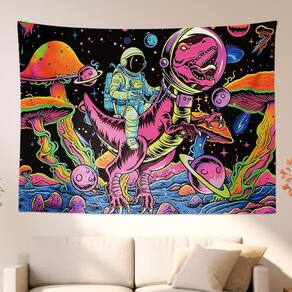 Tapeçaria de parede Astronautas e dinossauros, microtecido 150x130cm