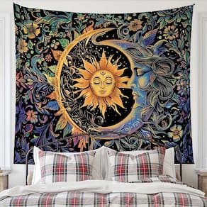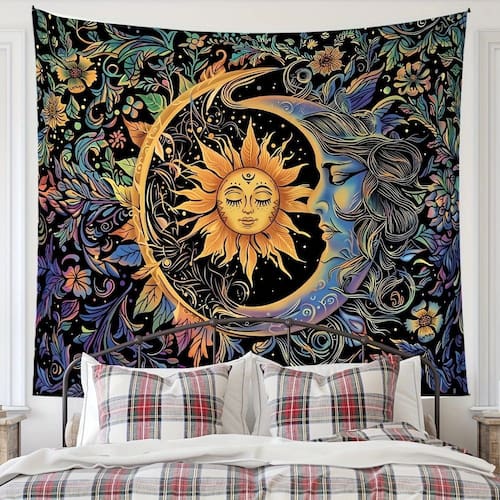 Material: pele de pêssego Tamanho: 150 cm × 130 cm Peso: 260 g Linda tapeçaria “Sol e Lua” com uma cena celestial com desenhos vibrantes de sol, lua e flores, perfeita para adicionar um toque místico ao seu quarto. Feita com tecido macio de veludo pêssego, esta tapeçaria oferece uma textura luxuosa e cores vibrantes para seu quarto, sala de estar ou espaço de meditação. Ideal para criar uma atmosfera tranquila e sonhadora, o simbolismo do sol e da lua adiciona uma sensação de equilíbrio e harmonia à decoração da sua casa. O tamanho de 150 x 130 cm se encaixa perfeitamente na maioria das paredes, tornando-o versátil para uso como ponto focal em sua sala ou como pano de fundo para fotos. Fácil de pendurar e cuidar, esta tapeçaria é lavável à máquina e durável, garantindo beleza e conforto duradouros.