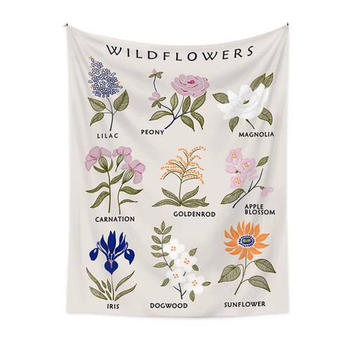 Tapeçaria de parede de flores silvestres 150x130cm de fibra de microtecido