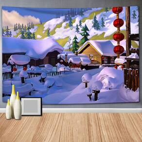 Tapeçaria de parede Happy Christmas Snowscape 150x130cm Microfabric