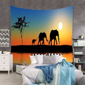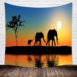 Tapeçaria de parede Pintura a óleo Elephant Dusk Print 150x150cm