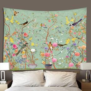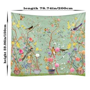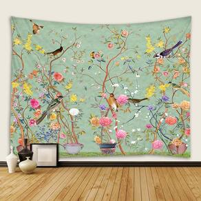 Tapeçaria: flor verde e pássaro, flor da primavera, 200x150cm