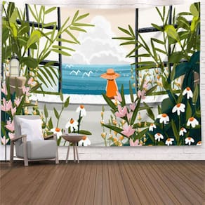 Tapeçaria Girl Forest Landscape Wall 150x150cm em microtecido