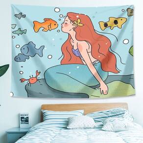 Tapeçaria Mermaids Wall Microfabric 150x130cm Decoração de quarto